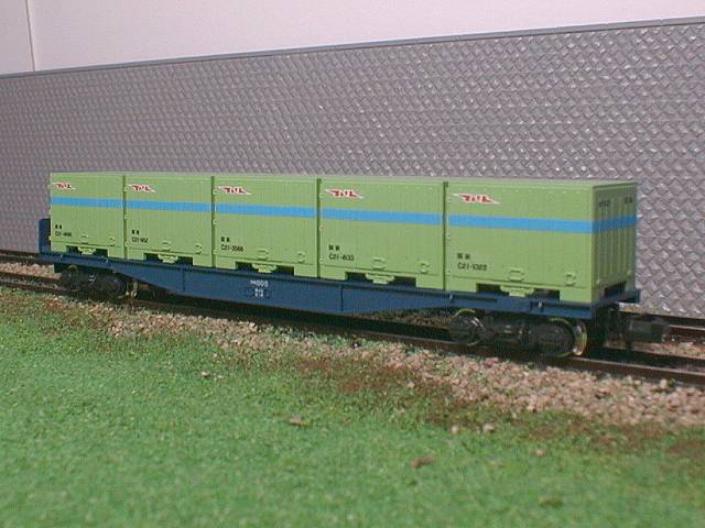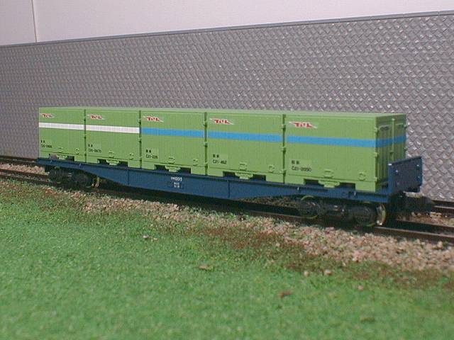 KATOのコキ10000をベースにし、C形コンテナ積載タイプとした物です。 |