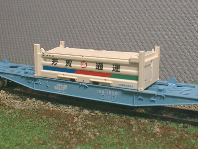 Tomix UM12A−5000コンテナ(コキ104−5000搭載コンテナ)をベースにし、 芳賀通運所有タイプとした物です。 |