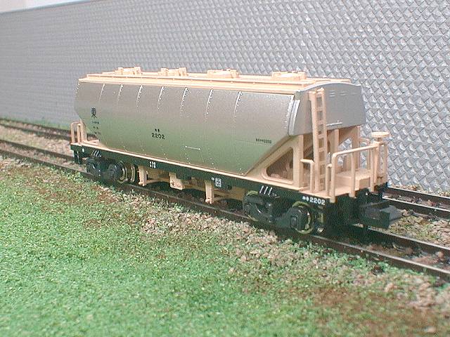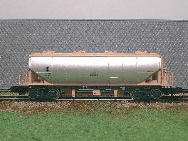 KATOのホキ2200をベースにし、試作タイプ登場時の遮熱板無塗装タイプとした物です。 |